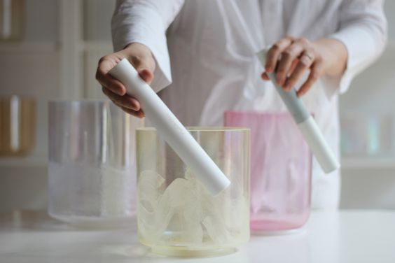當煉金水晶缽發聲時,聲波會透過空氣、骨骼與體內水分傳導,