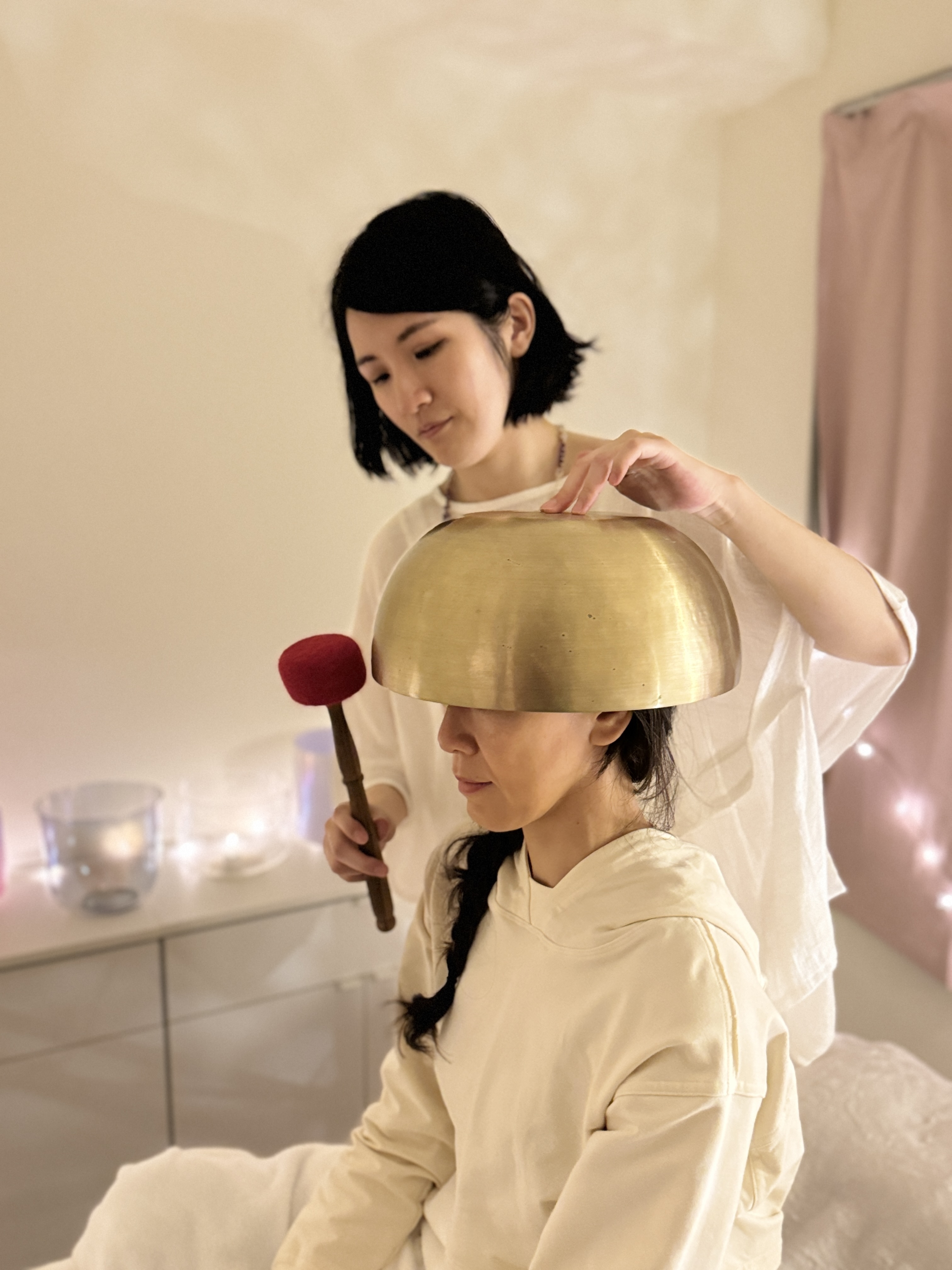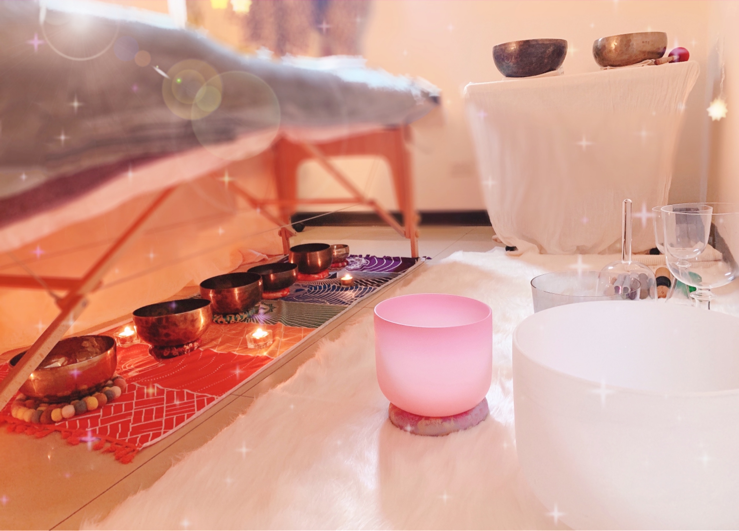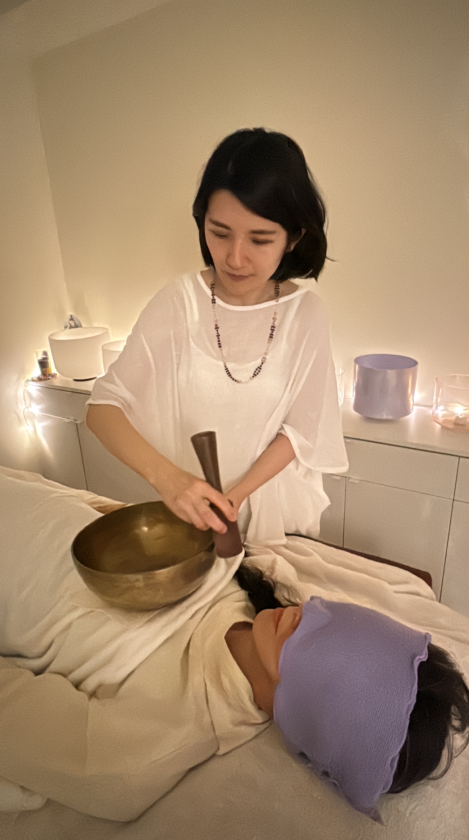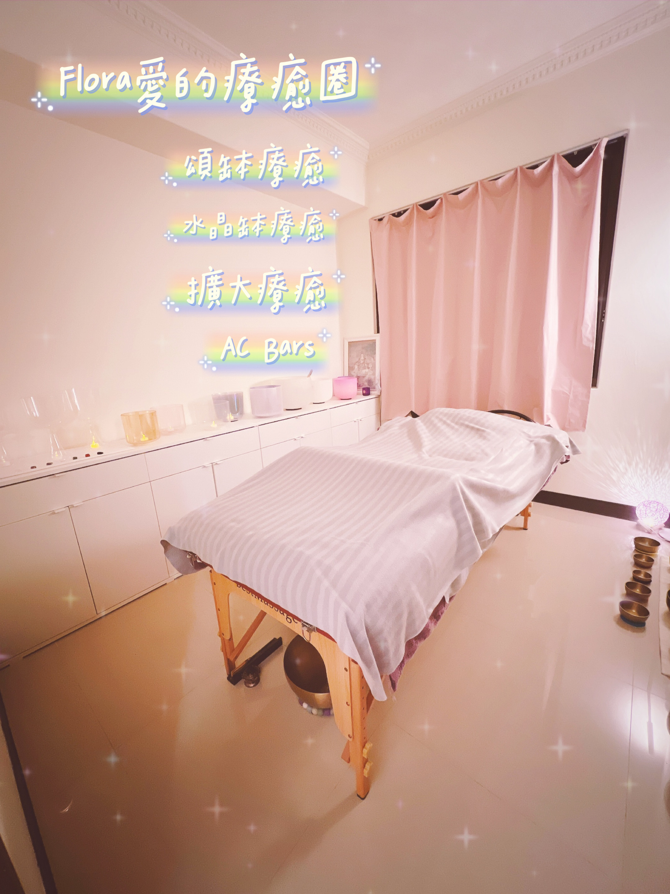 Flora會搭配水晶缽 、煉金水晶缽(美國crystal tones®)一起做療程~